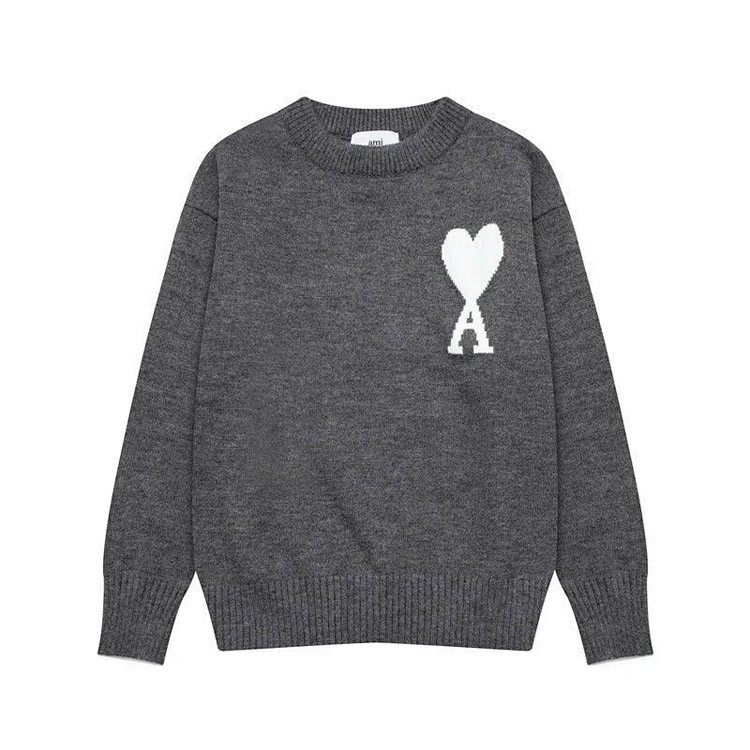 AMIPARIS Big Heart White Label Wool Crew Neck Sweater-4466