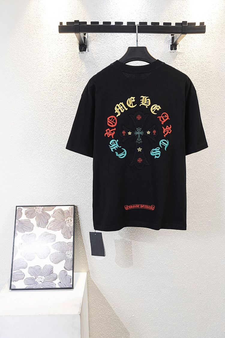 Chrome Hearts CH new colorful Sanskrit letter embroidered short-sleeved T-shirt-5418