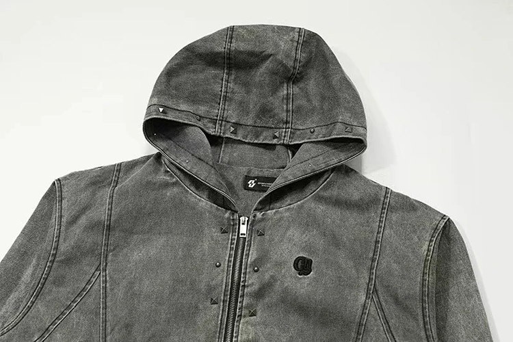 Home > Darkage new washed and distressed hooded jacket with rivets-5013