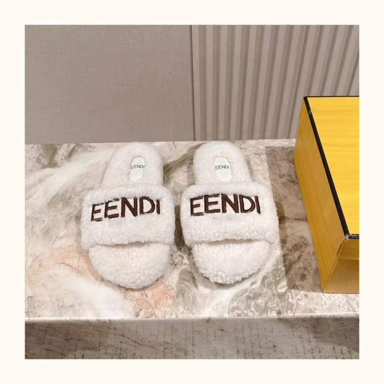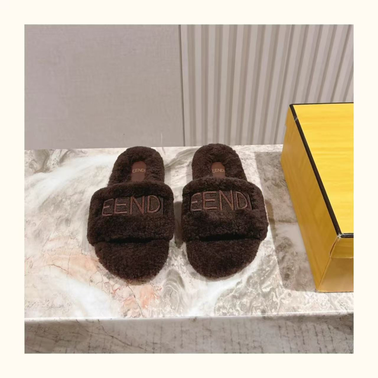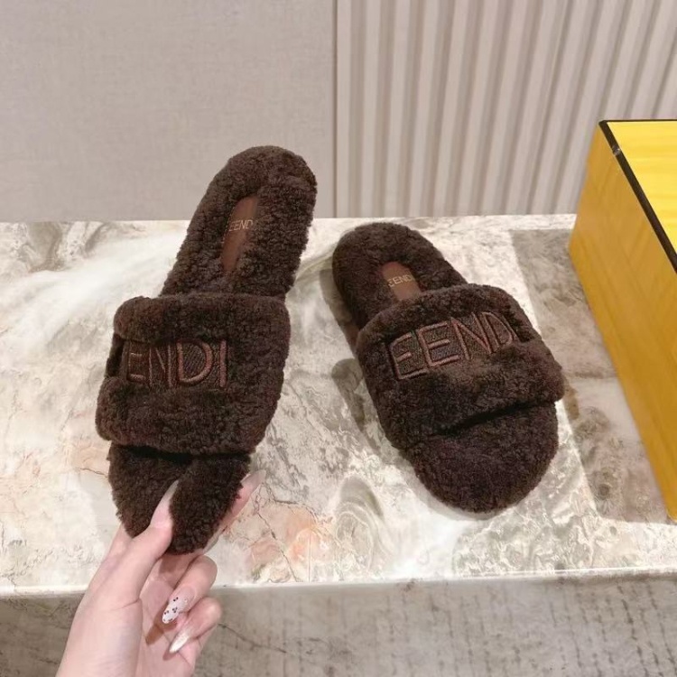 Fendi new design letter embroidered fur slippers-5689