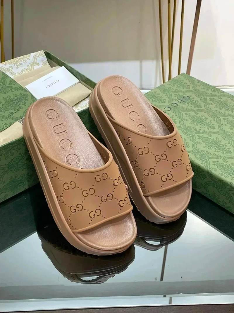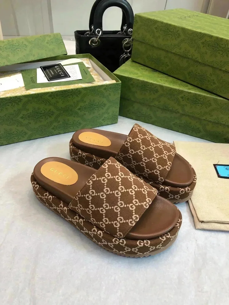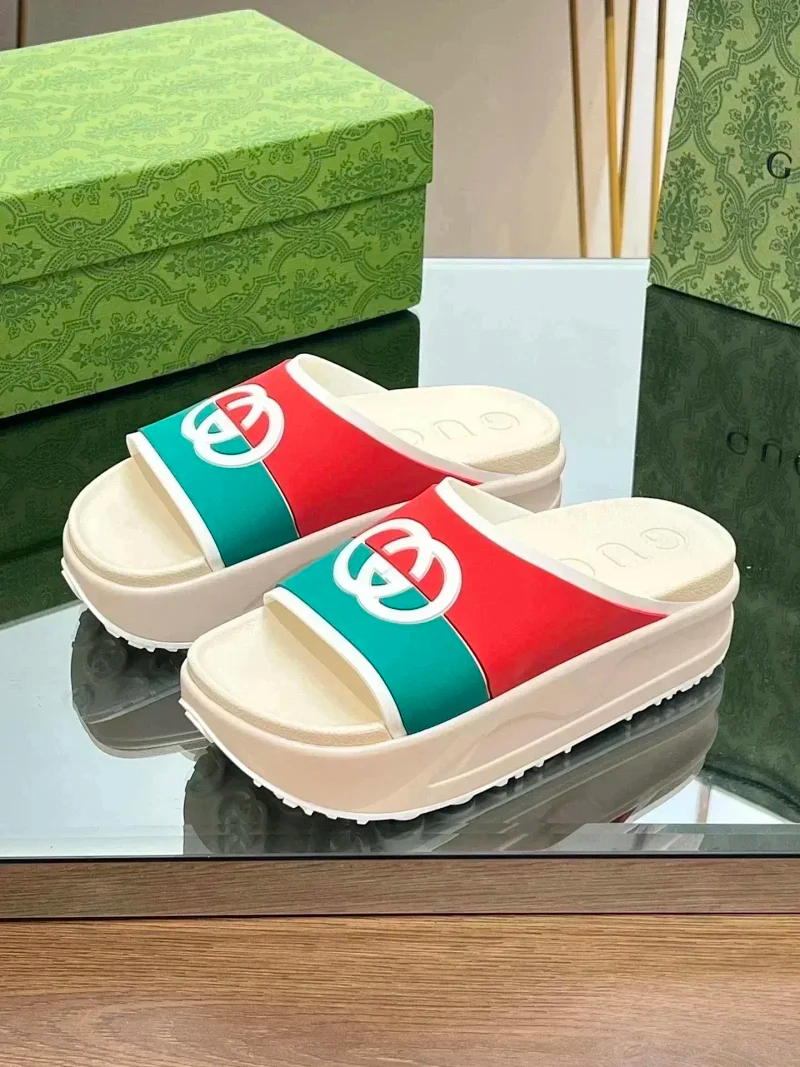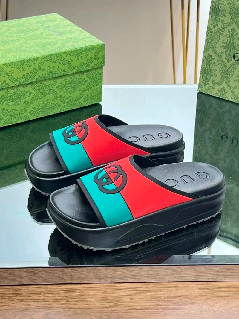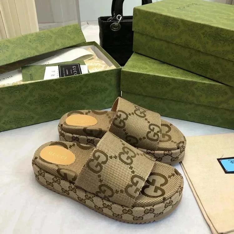 GUCCI one-word new slippers embroidered thick-soled height-enhancing platform cake couples(37 styles)-2331