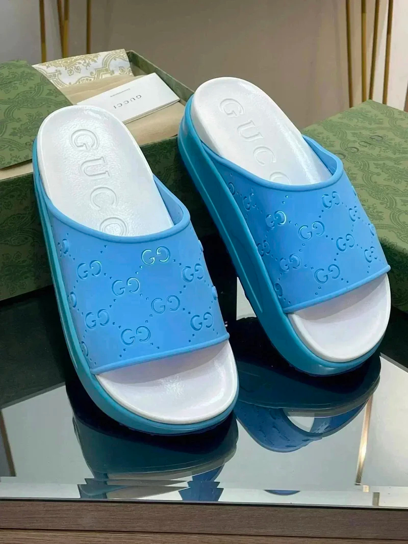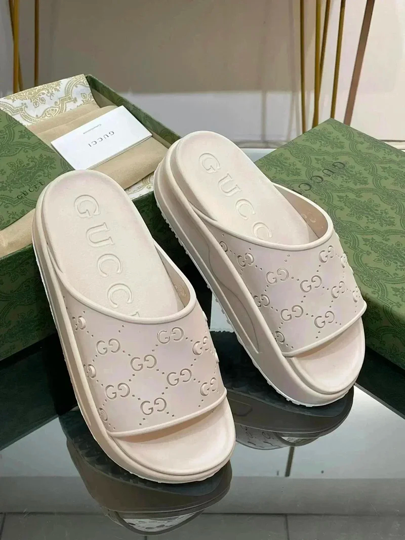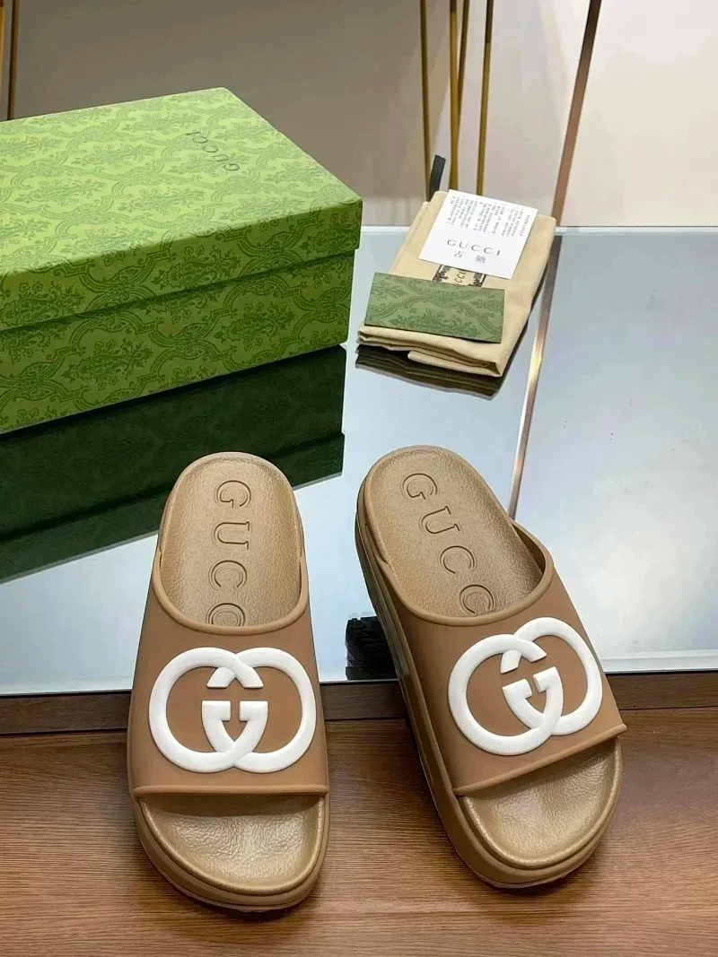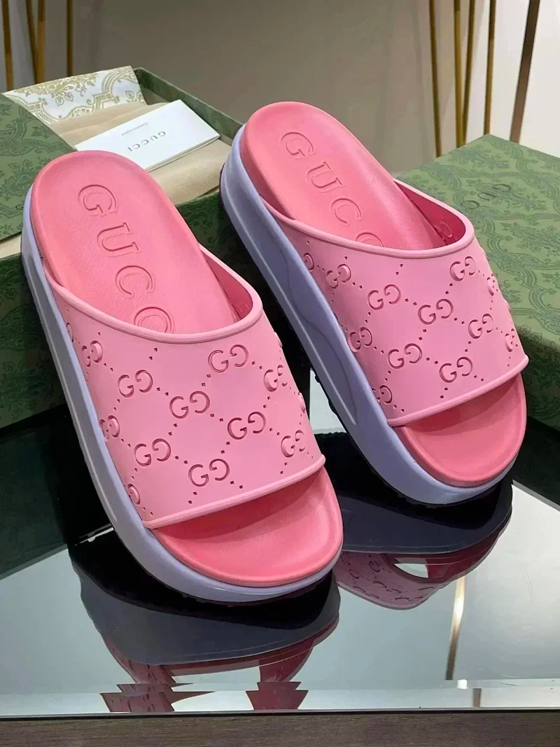 GUCCI one-word new slippers embroidered thick-soled height-enhancing platform cake couples(37 styles)-2331