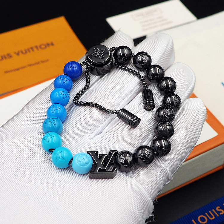 Home > Louis Vuitton LV blue letter incarnation pendant and inscription on polished metal beads Bracelet-3948