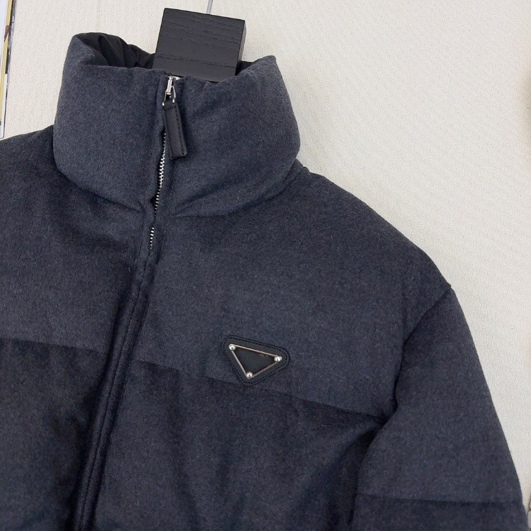 Prada stand-collar wool fabric long-sleeved belted thickened warm down jacket-5346
