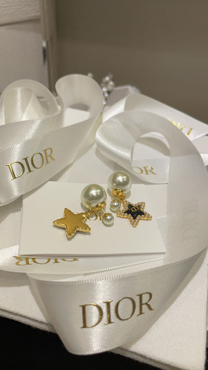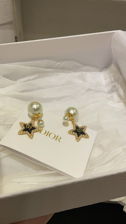 Dior navy blue star pearl double ball earrings-3891