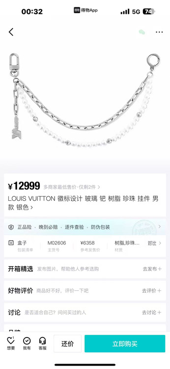 Home > Louis Vuitton LV Pearl Metal Bar Bag Waist Chain Pendant-3857