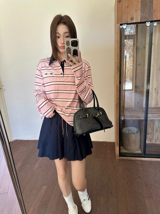 Miu Miu's new collared patchwork casual versatile polo shirt T-shirt-5371