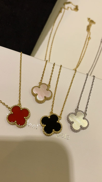 Van Cleef & Arpels Black Onyx Four-Leaf Clover Gold Necklace-3887