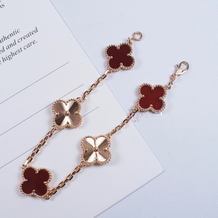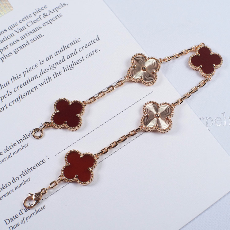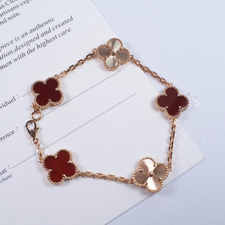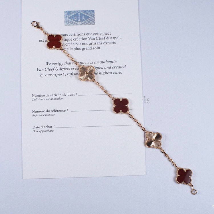 Van Cleef & Arpels Red Agate Laser Flower Bracelet-3690
