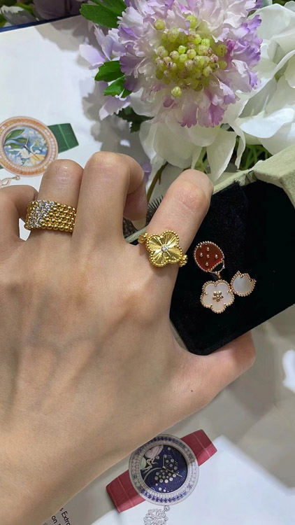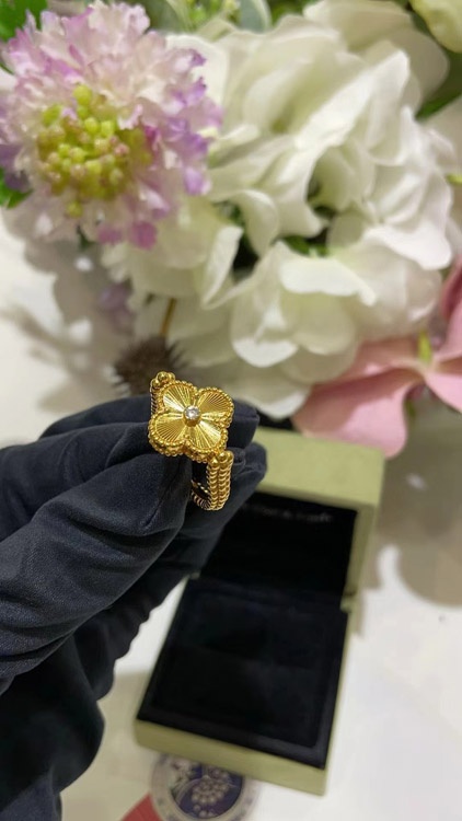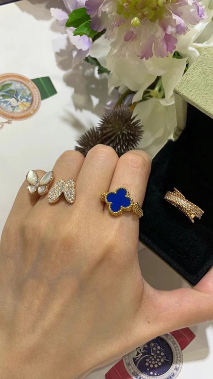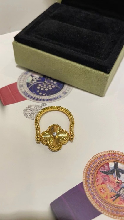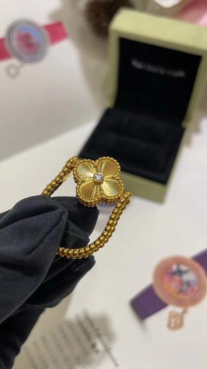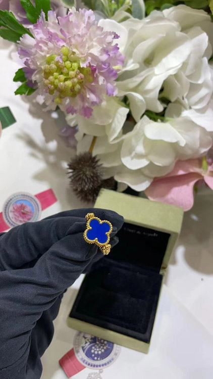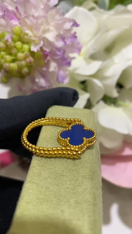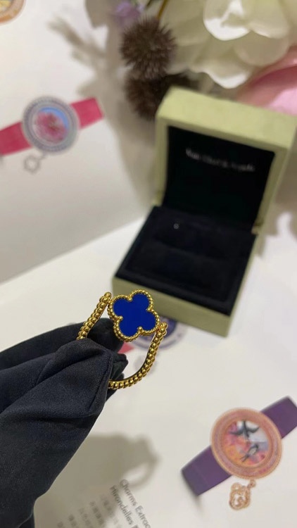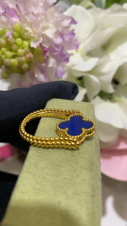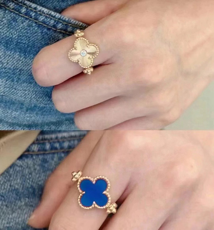 Van Cleef & Arpels Sapphire Agate x Gold Laser Clover Reversible Ring-3730